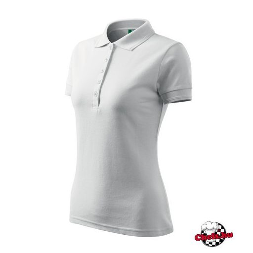 Fehér színű, női, galléros, piké póló Fehér színű, női, galléros, piké póló