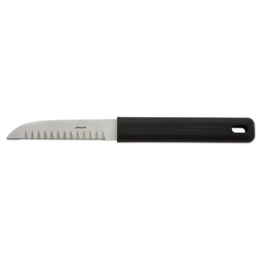 Díszítőkés 90 mm hosszúságú rozsdamentes acél pengével. A gyönyörű tálalás már fél siker! Használja a spanyol Arcos cég díszítőkését, és nyűgözze le vendégeit mintás zöldségekkel! Dobja fel az unalmas répát, burgonyát egy kis csíkozással és máris szebb lesz az egyszerű étel is. A termék professzionális és háztartási használatra egyaránt ajánlott, így nem csoda, ha még NSF élelmiszerbiztonsági tanúsítvánnyal is rendelkezik. Markolata kényelmes fogást biztosító polipropilén.