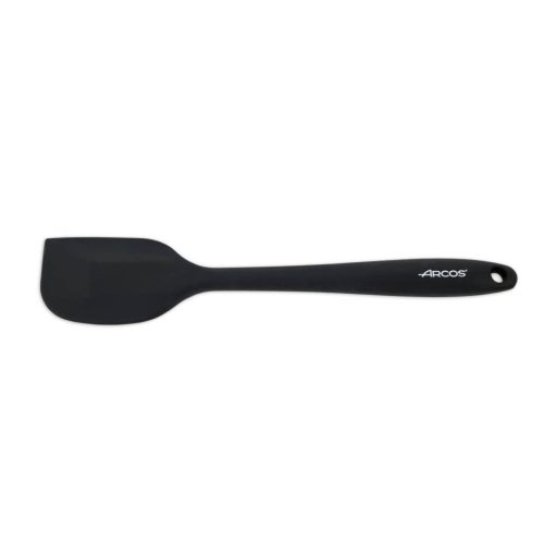 Szilikon spatula, mely 28,6 cm hosszúságú. A spatula 230°C-ig hőálló így akár serpenyőben is kavargathatunk vele.A termék fekete színű, végén akasztóval. Kiváló minőségű termék, mellyel Ön könnyen dolgozhat.