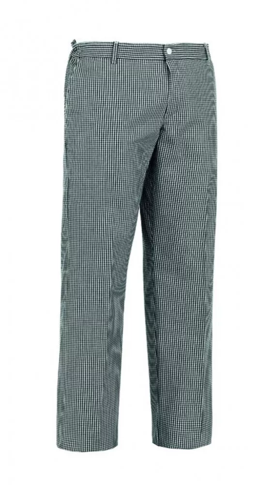 Gombos, cipzáras kivitelű szakácsnadrág. Két oldalán kicsi gumi betoldással.