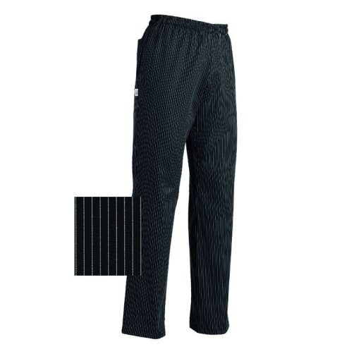 Szakácsnadrág - vékony csíkos, 100% pamut, gumis derekú