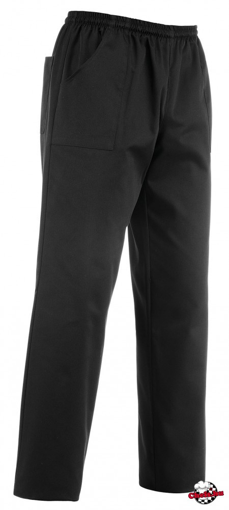 Fekete színű, gumis derékrésszel ellátott szakácsnadrág, 100% új generációs mikroszálas anyagból!