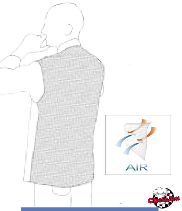 Hófehér szakácsing 100% pamut anyagból, szellőző hátrésszel, bal oldalon egy mellzsebbel és alul még két másik zsebbel, hogy legyen mit hova pakolnod... :)
