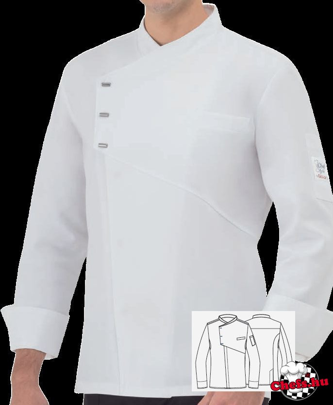 Divatos, fehér, patenttal záródó szakácskabát, az olaszországi, prémium minőségű szakácsruha gyártó GIBLOR'S-tól.
