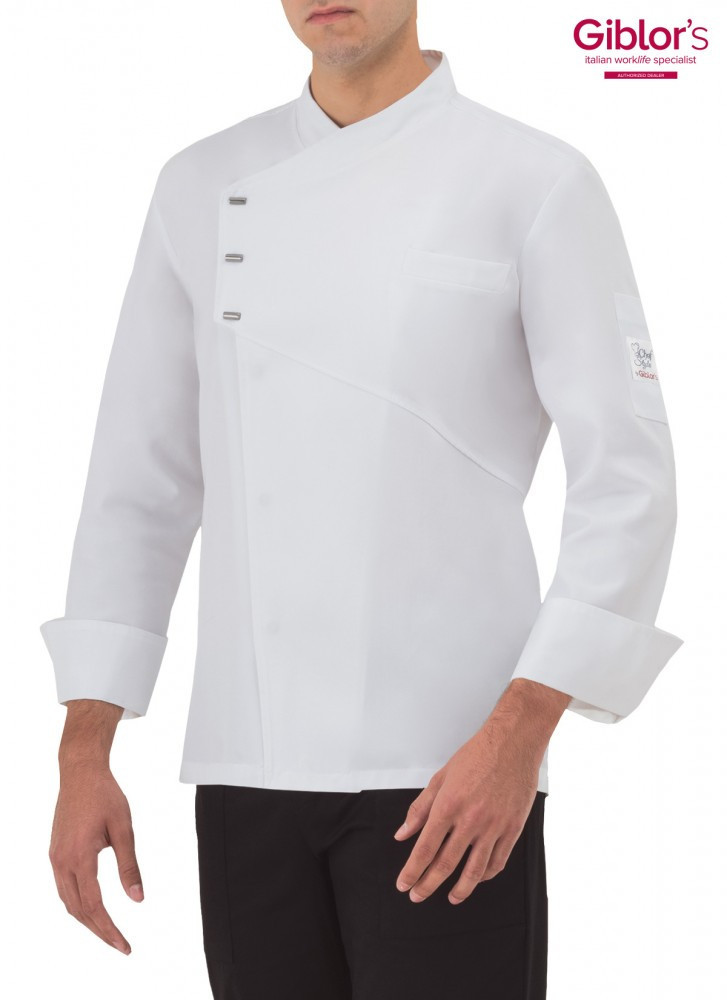 Divatos, fehér, patenttal záródó szakácskabát, az olaszországi, prémium minőségű szakácsruha gyártó GIBLOR'S-tól.