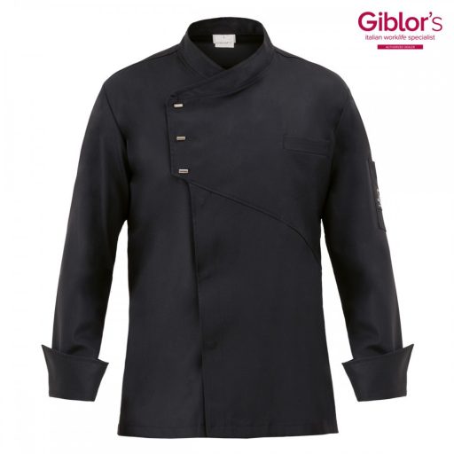 Divatos, fekete, patenttal záródó szakácskabát, az olaszországi, prémium minőségű szakácsruha gyártó GIBLOR'S-tól.