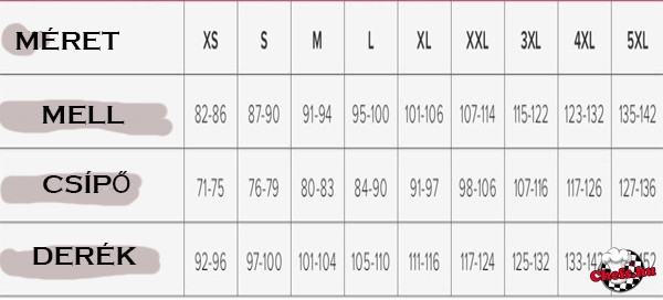 Méretek: XS-3XL-ig