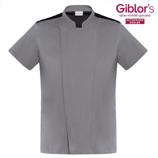 Slim Fit szabású, álló gallérral, hagyományos felfelé gombolással és mellzsebbel.