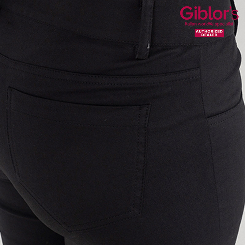 Az Iride munkanadrágot a stílus és a sokoldalúság ötvözésére tervezték. Szuper sztreccs anyagból készült, normál derékkal, vékony szárral, cipzárral, tapadógombbal és matt nikkelszegecsekkel. A nőies sziluettet feszes és esszenciális szabással kiemelő ruhadarab. Ideális az új trendekre jobban odafigyelő vásárlóknak, idén szupersztreccs anyagból készült.