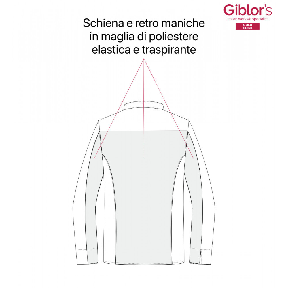 Slim Fit szabású, álló gallérral, hagyományos felfelé gombolással és mellzsebbel.