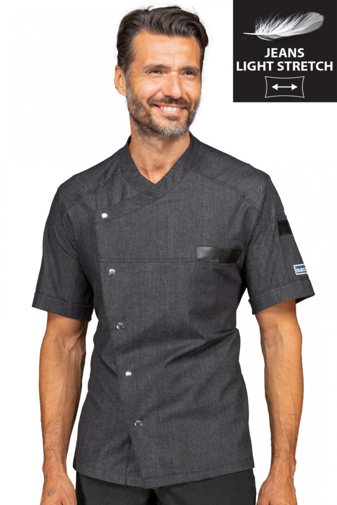 Sztreccses anyagú fekete színű farmer szakácskabát Sztreccses anyagú fekete színű farmer szakácskabát