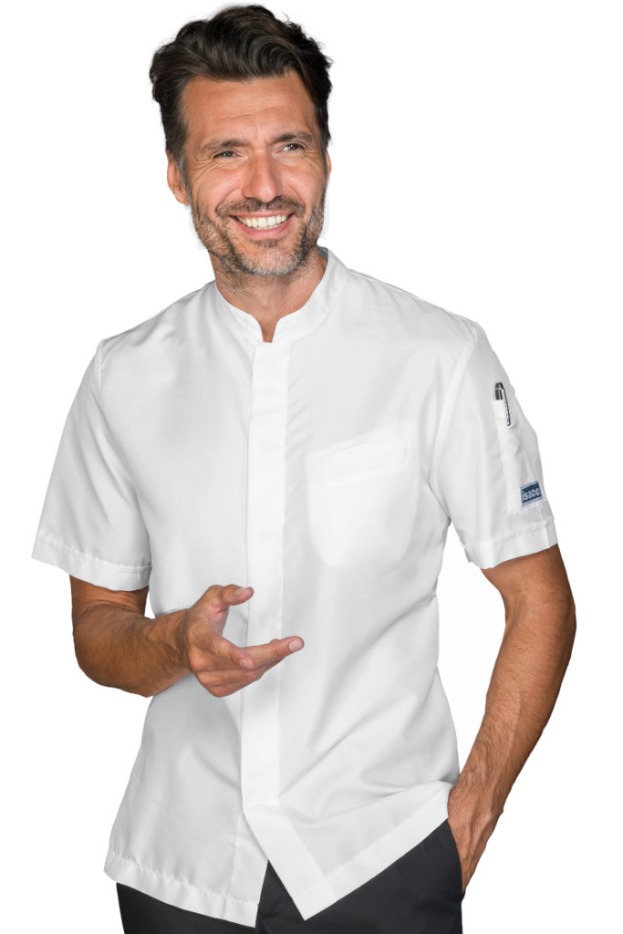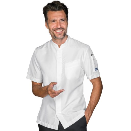 A Bradford Slim fehér színű, uniszex szakácskabát. Kiváló választás férfiak és nők számára, akik séfként dolgoznak konyhában, étteremben vagy catering szolgáltatásnál. Kínai gallérral és középső gombos rögzítéssel. Háton mikrohálós rész a jobb légáteresztésért. Mind a mellkason, mind a karokon zsebekkel ellátott.