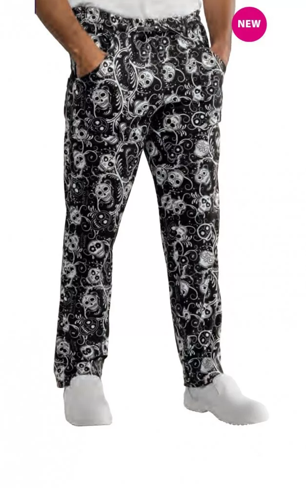 Mexikói koponyákkal díszített szakácsnadrág