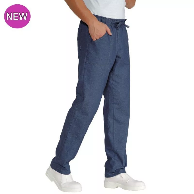 Kényelmes, uniszex szakácsnadrág két rávarrt oldalzsebbel és egy hátsó zsebbel, kissé elasztikus 100% pamutból anyagból.