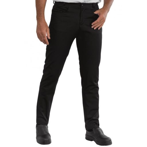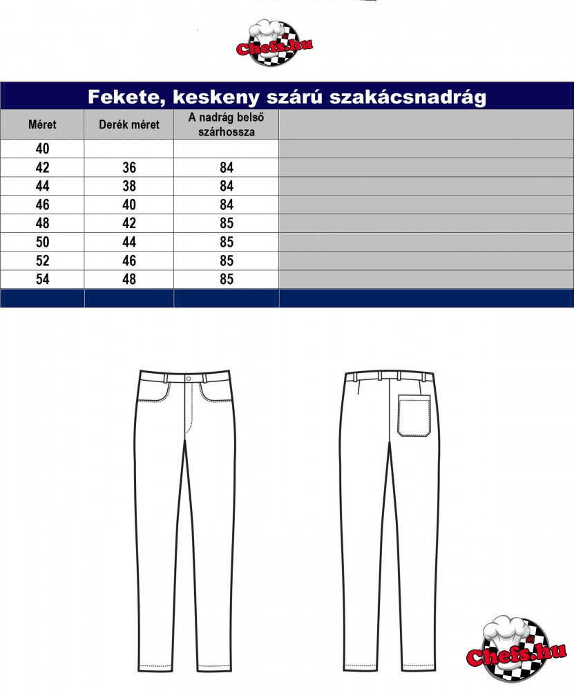 Fekete, modern szabású, keskeny szárú nadrág. Viselése alkalmas a konyhán de a vendégtérben is megálja a helyét!