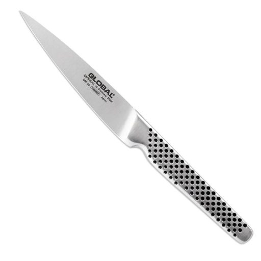 A Global 11 cm-es Konyhai kés egy páratlan minőségű, japán kés. A kés pengéje rozsdamentes acélból készül, amely tökéletesen ellenáll a rozsdának és a kopásnak A kést ergonomikus markolattal látták el, amely kényelmes és biztonságos fogást biztosít a felhasználó számára. A kés többféle feladatra használható, beleértve a húsok és halak filézését, gyümölcsök és zöldségek aprítását, szeletelését és általános ételek előkészítését. Kiváló minősége és funkcionalitása miatt ez a kés népszerű választás a szakácsok és az otthoni szakácsok körében egyaránt.