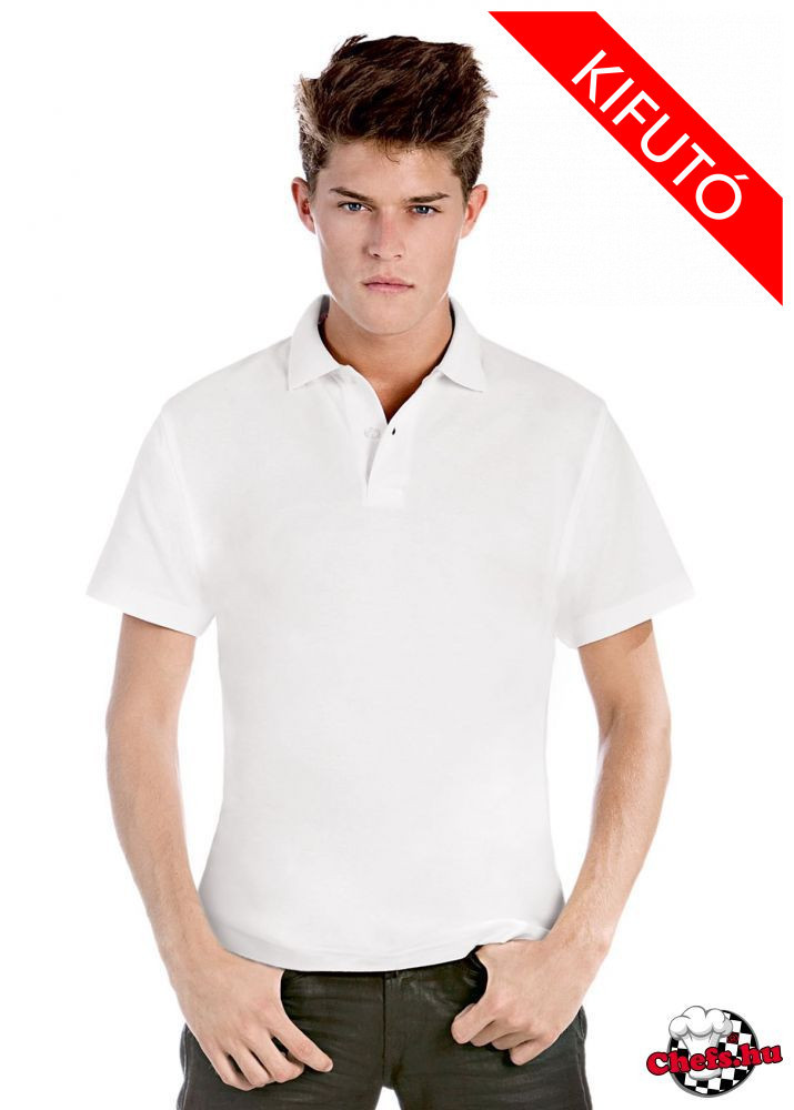 Elegáns, fehér, galléros, pamut póló, a póló színével megegyező színű gombokkal.