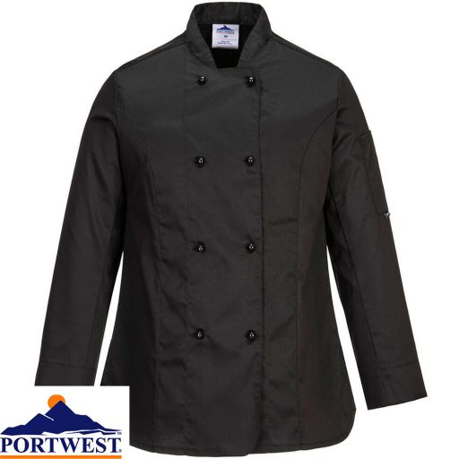 Ez a séfkabát kimondottan hölgyek számára készült, hogy biztosítsa a maximális kényelmet és funkcionalitást, miközben tökéletesen illeszkedik. A kabát oldalán, mandzsettáján és hónalj részén MeshAir szellőzőnyílások találhatók, amelyek garantálják a megfelelő légáramlást. A stílusos dizájn részeként a kabát négy sor megfordítható, levehető gombokkal rendelkezik, emellett praktikus zsebek is találhatóak rajta.