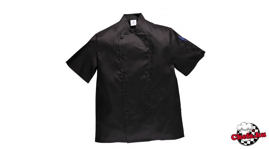 Szakácskabát - fekete, rövid ujjú, gombos
