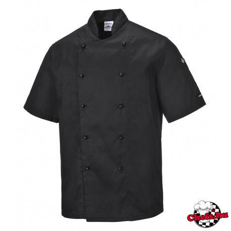 Szakácskabát - fekete, rövid ujjú, gombos