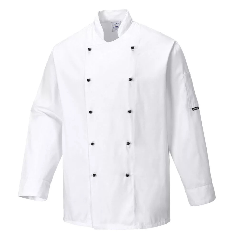 Divatos, magas minőségű alapanyagból készült séfkabát. Bőrbarát kevert szálas anyaga rendkívüli módon szín- és mérettartó.