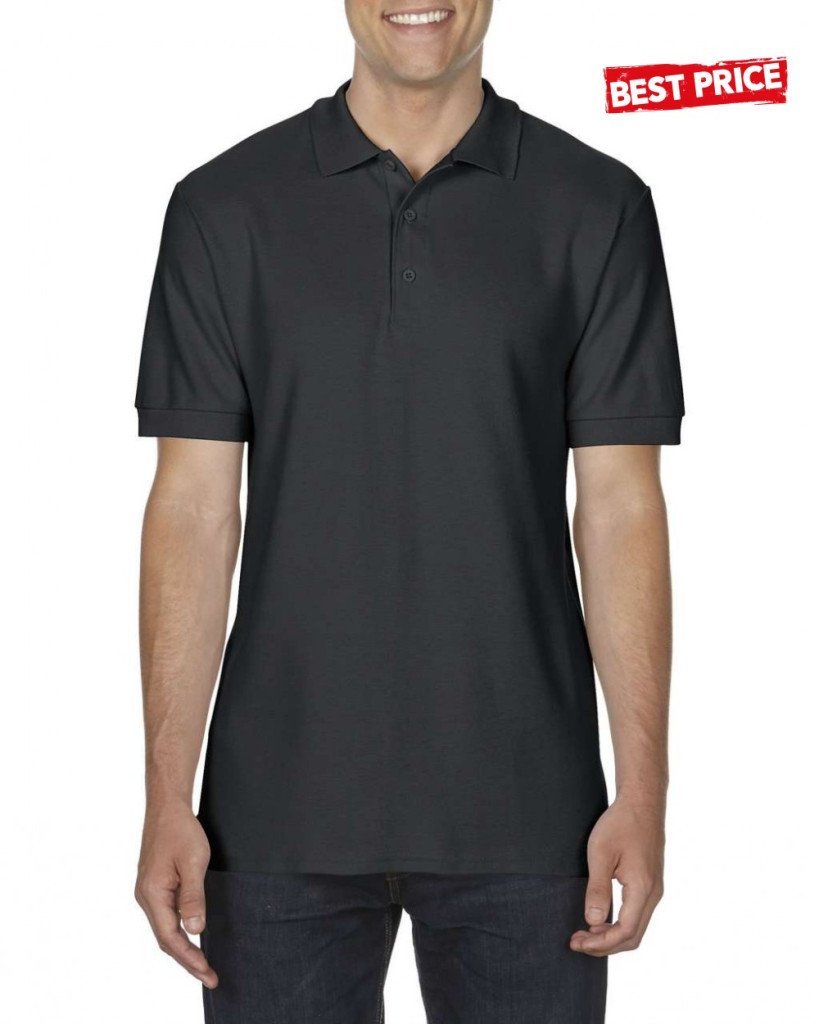 GILDAN - FEKETE színű, prémium pamut, galléros piké póló
