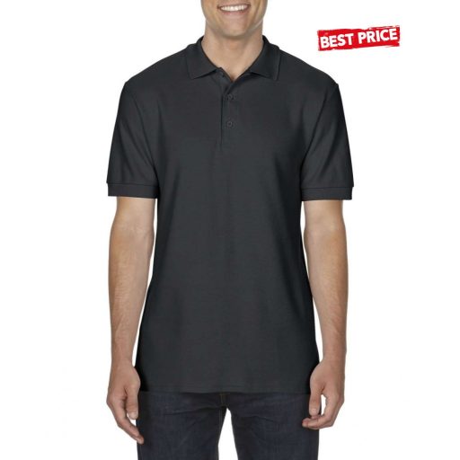 GILDAN - FEKETE színű, prémium pamut, galléros piké póló