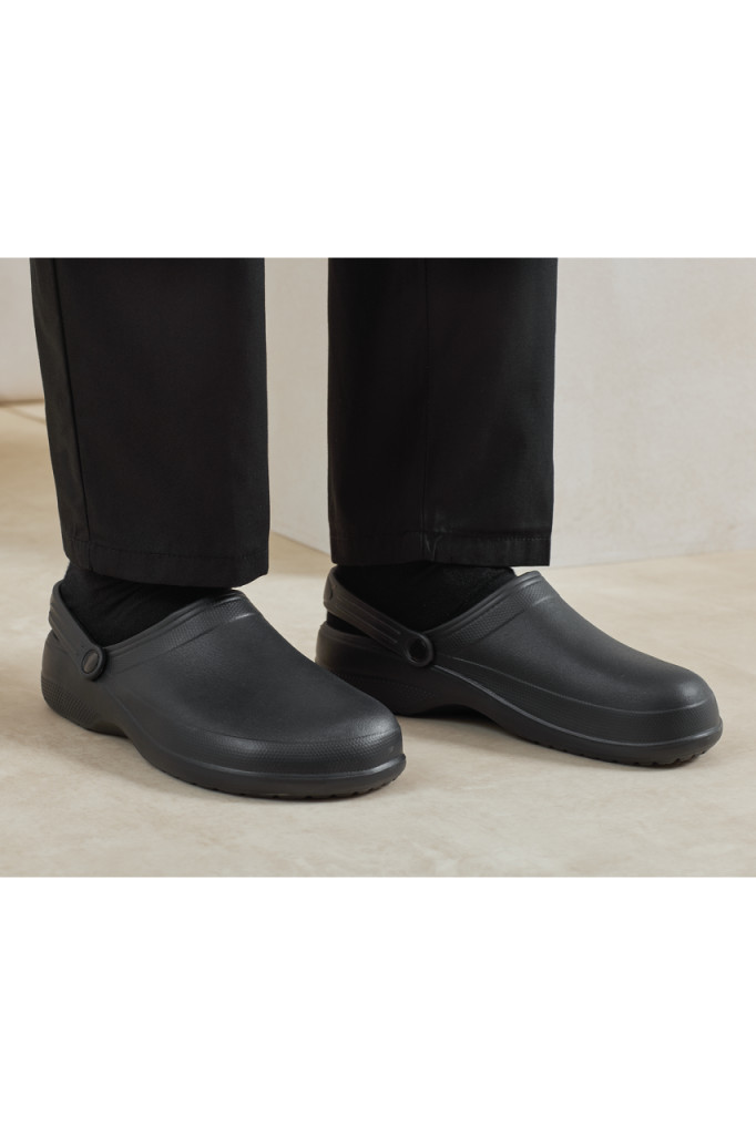 A kényelmes, formázott belső talp gondoskodik a hosszabb műszakok során is optimális alátámasztásról, míg az állítható, felhajtható sarokpánt lehetővé teszi, hogy a lábbeli pontosan a viselő igényeihez igazodjon – akár papucsként, akár rögzített sarokpánttal viselve.