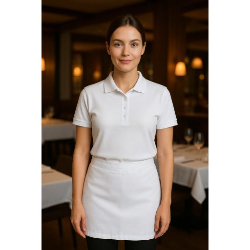 A bordás gallér és mandzsetták klasszikus megjelenést adnak, miközben a nyaknál elhelyezett megerősítő szalag növeli a formatartást és a tartósságot. A rövid ujjú, illeszkedő szabású kialakítás kényelmes, mégis elegáns megjelenést nyújt.