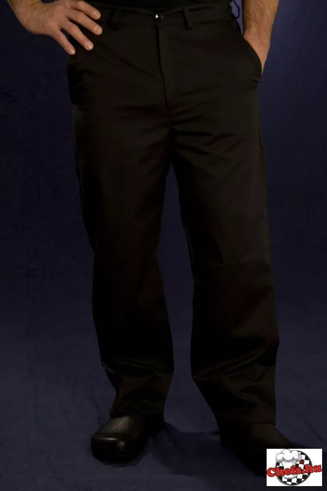 Szakácsnadrág - fekete, gombos-cipzáras, 50% pamut - 50 PES