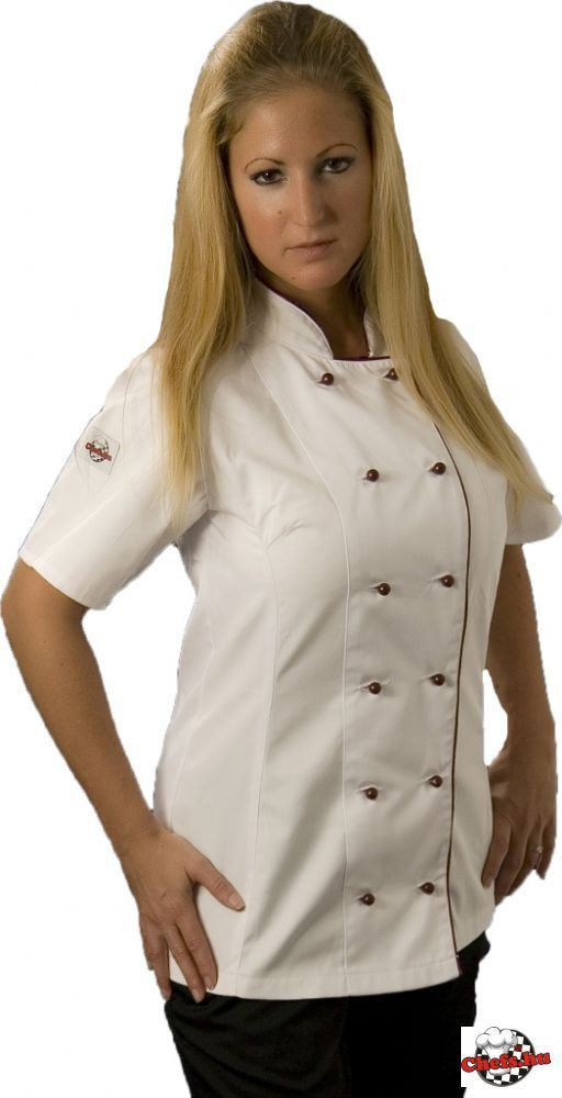 Női szakácskabát, cukrászkabát - bordó paszpól díszítéssel Női szakácskabát, cukrászkabát - bordó paszpól díszítéssel Női szakácskabát, cukrászkabát - bordó paszpól díszítéssel