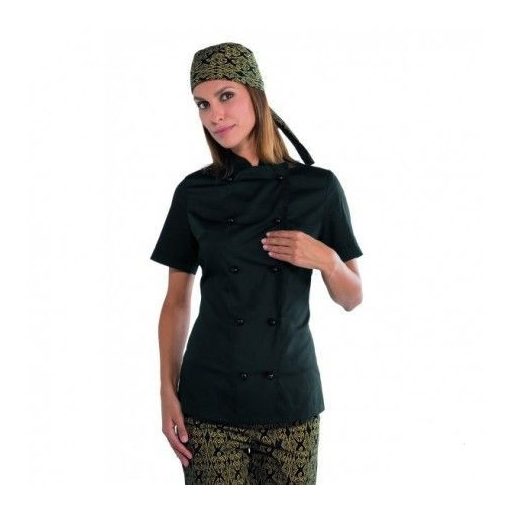 Női szakácskabát - fekete, rövid ujjú, fekete színű kivehető gombokkal
