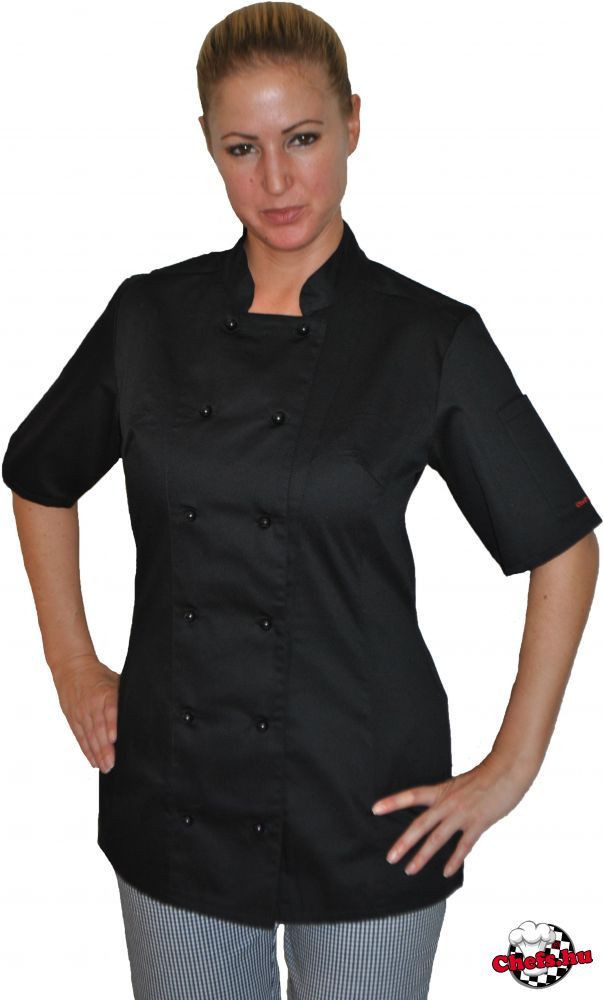 Női szakácskabát - fekete, rövid ujjú, fekete színű kivehető gombokkal Női szakácskabát - fekete, rövid ujjú, fekete színű kivehető gombokkal